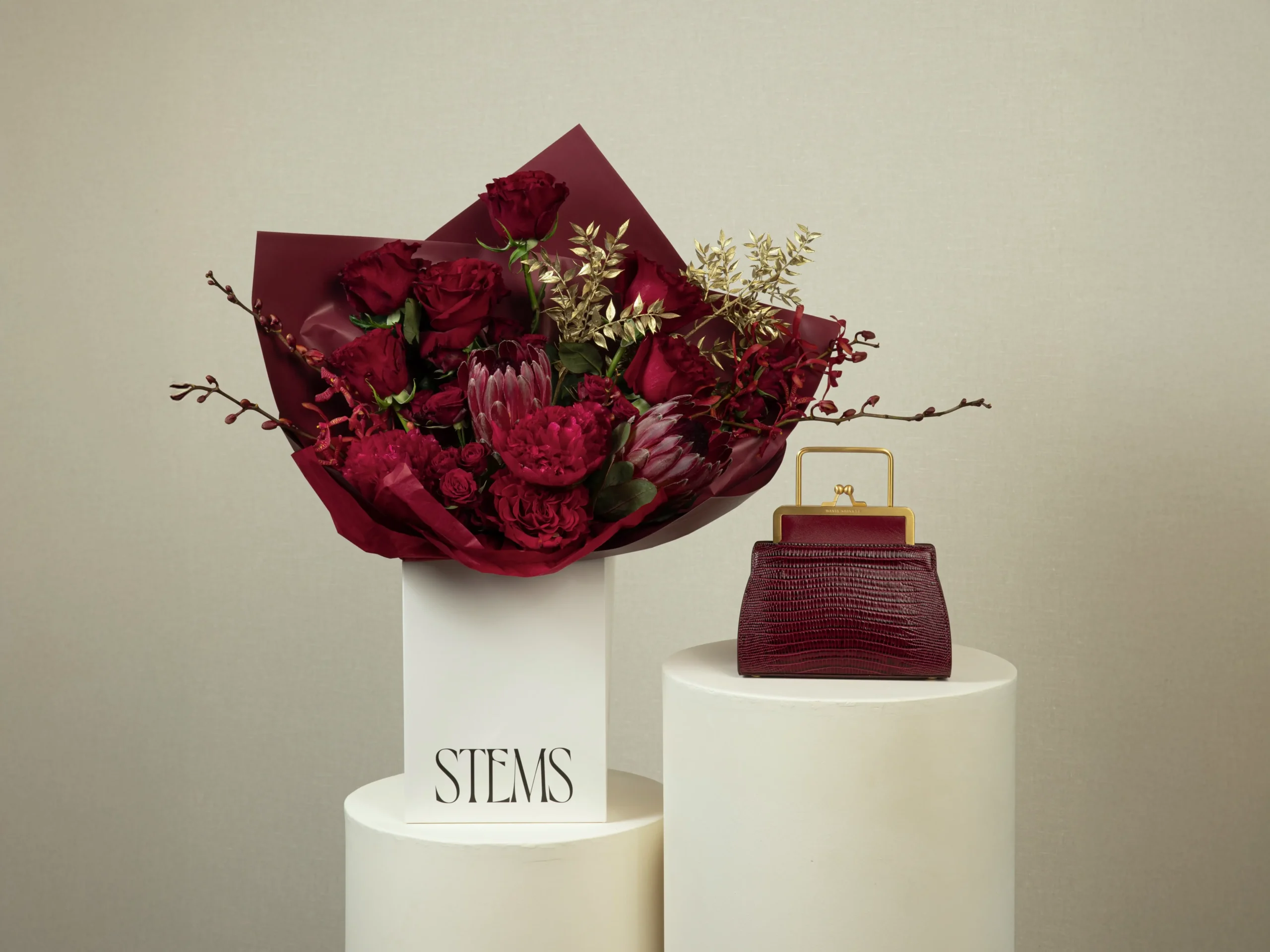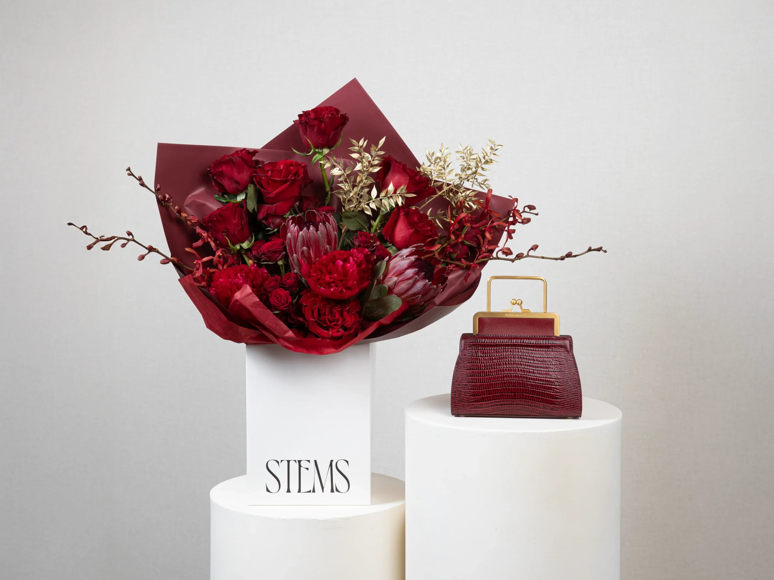 - 100% Italian burgundy lizard-embossed cowhide, cherry red nappa leather